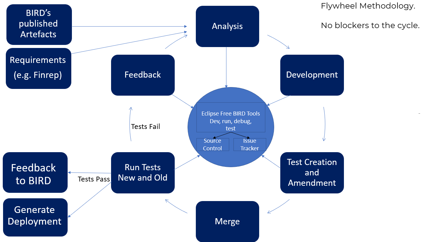 This reference implementation is maintained using the ‘FlyWheel Methodogy’ below, which allows rapid progress without blockers.